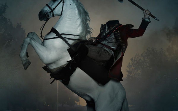 The dominant spirit, however, that haunts this enchanted region, and seems to be commander-in-chief of all the powers of the air, is the apparition of a figure on horseback without a head. It is said by some to be the ghost of a Hessian trooper, whose head had been carried away by a cannon-ball, in some nameless battle during the revolutionary war; and who is ever and anon seen by the country folk, hurrying along in the gloom of night, as if on the wings of the wind. His haunts are not confined to the valley, but extend at times to the adjacent roads, and especially to the vicinity of a church at no great distance. Indeed, certain of the most authentic historians of those parts, who have been careful in collecting and collating the floating facts concerning this spectre, allege that the body of the trooper, having been buried in the church-yard, the ghost rides forth to the scene of battle in nightly quest of his head; and that the rushing speed with which he sometimes passes along the Hollow, like a midnight blast, is owing to his being belated, and in a hurry to get back to the church-yard before daybreak.