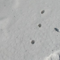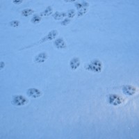 At first we thought it might be a coyote, or a Coy Dog. But the tracks are much to small and much to straight. The walk ratio is straight, not one leg to another. When they think it is a coyote, we show them that the hole opening is about half dollar size. So this discounts most Coyote / Coy dog like animals.