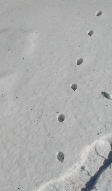 At first we thought it might be a coyote, or a Coy Dog. But the tracks are much to small and much to straight. The walk ratio is straight, not one leg to another. When they think it is a coyote, we show them that the hole opening is about half dollar size. So this discounts most Coyote / Coy dog like animals.